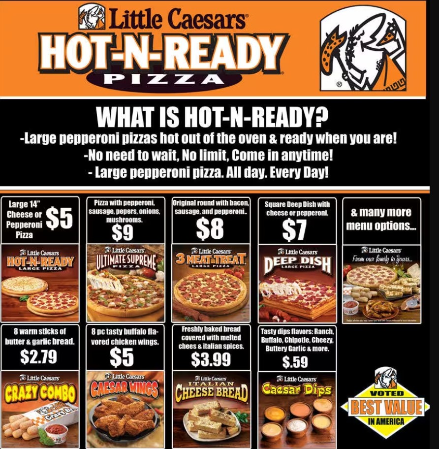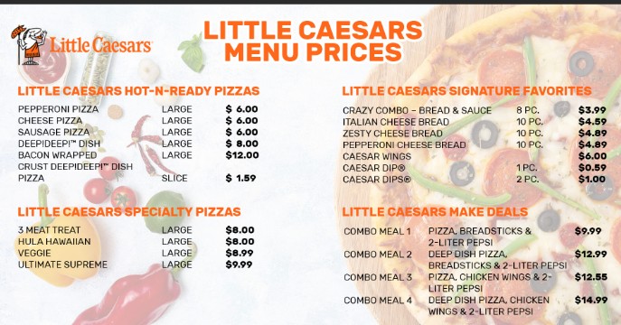 At Little Caesars Pizza Restaurant, we bring you the best in fast, fresh, and affordable pizza. Whether you're in the mood for our signature pizzas, crispy chicken wings, or classic breadsticks, we’ve got something for everyone. Made with housemade dough and quality ingredients, our pizzas are ready in no time for you to enjoy. Visit us today for a quick bite or order online for takeout and delivery – making great pizza easy and delicious!